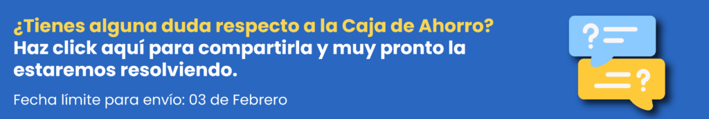 Colaboradores Hoy te presentamos: Caja de Ahorro enero 19, 2023mayo 24, 2023 by Walkyria Saenz Jesús Correa, Gerente de Administración de Recursos Humanos, nos platica un poco sobre nuestra Caja de Ahorro, su funcionamiento y todos los beneficios que ofrece a los colaboradores. Producción: Daniel Rodríguez Navegación de entradas ¡Gracias por crecer con nosotros! Reconocimiento a la Lealtad 2022Mensaje de Dirección General y un Año en Perspectiva 2022