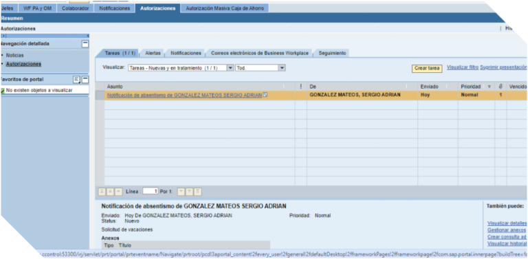 Deberá seguir los mismos pasos mencionados anteriormente para ingresar al Portal SAP, pero en el caso de tu jefe, deberá hacer clic en la pestaña “Autorizaciones”.