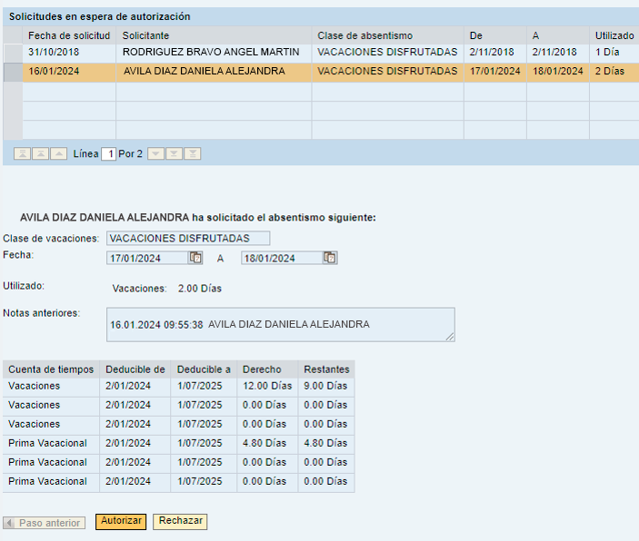 Ahora le toca a tu jefe. Avísale en cuanto sea posible que ya capturaste tu solicitud, ya que cuenta sólo hasta el día siguiente para autorizarlas.